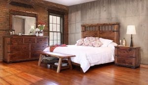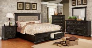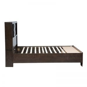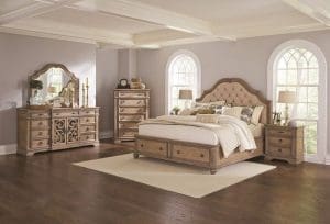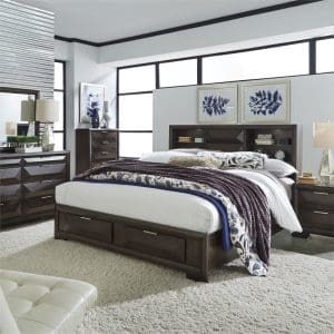Platform bed frames also often include storage drawers in the foot board or side rails for convenient, extra storage space. This featured platform bed from Liberty Furniture also includes a bookcase headboard with glass shelves and LED touch lighting. There are also additional storage drawers with decorative raised fronts between the book shelves. This modern, transitional style bedroom set would be perfect to create a cozy, comfortable setting to relax and experience sweet dreams.